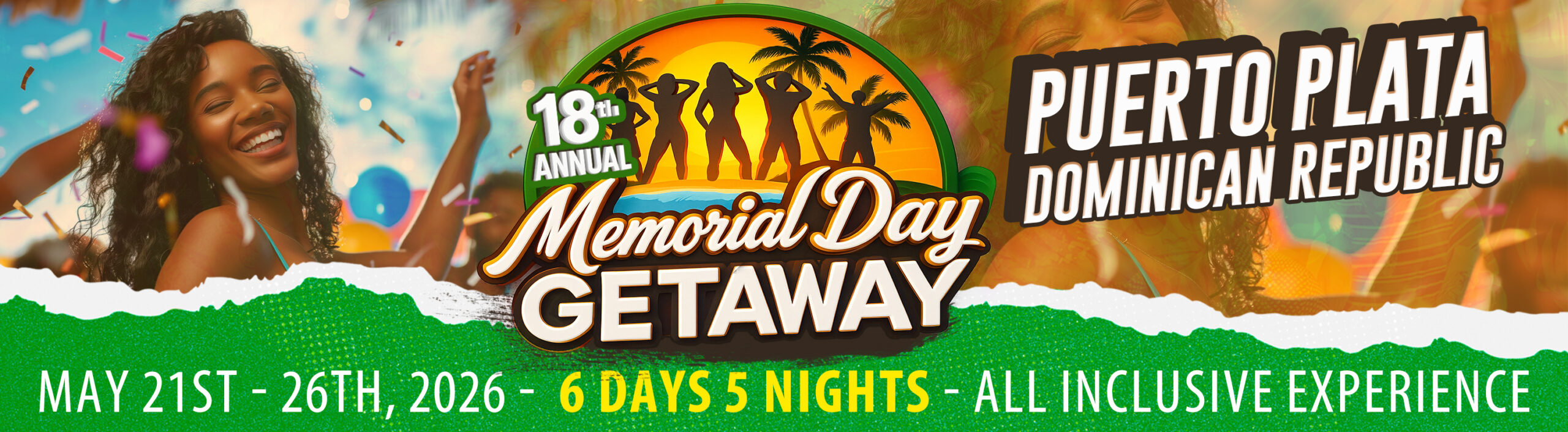 The Memorial Day Getaway Weekend, is an international destination event. It takes place in the vibrant Caribbean at lifestyle Holiday Resort in Puerto Plata, Dominican Republic. The perfect weekend for making new friends and rekindling old connections, this bespoke, 6-Day, 5-Night experience is tailored for urban professional travelers.